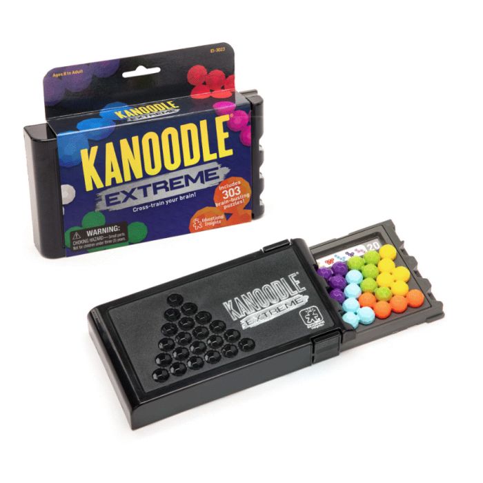 Kanoodle® Extreme Game has lots of mind-bending challenges. Kanoodlers can test their skills with over 300 puzzles in these formats: Traditional 2D, Traditional 3D and the new 2D puzzles that feature a sliding puzzle board. These challenges help build spatial reasoning and critical thinking skills, and area great for keeping children busy and learning through play.