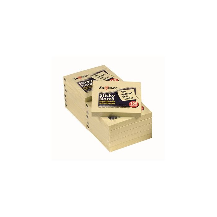 Sticky Note Memo Pads 76x76mm x100 Sheets Yellow Snopake